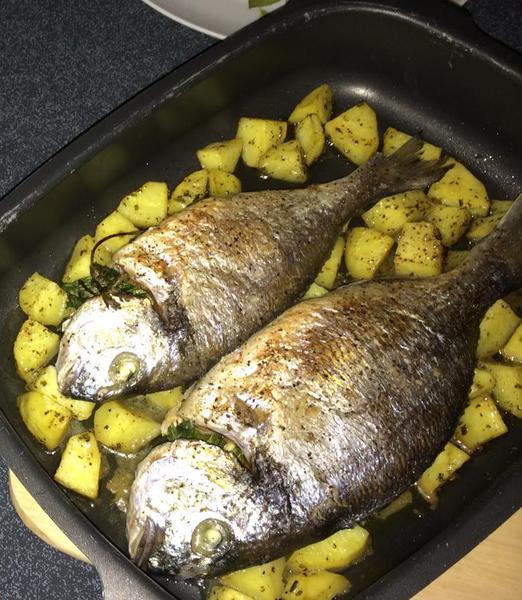 Unser Tipp: Wir haben den Fisch immer sofort zusammen mit den Kartoffeln in den Backofen gegeben, da wir eher zwei kleinere Fische nehmen. Nach ca. 25 - 30 Minuten war beides zusammen gar.